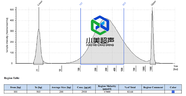 平均片段大小:288 bp, 101-503 bp區(qū)間占比 83.64%。