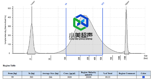 平均片段大小:266 bp,99-503 bp區(qū)間占比 89.33%。