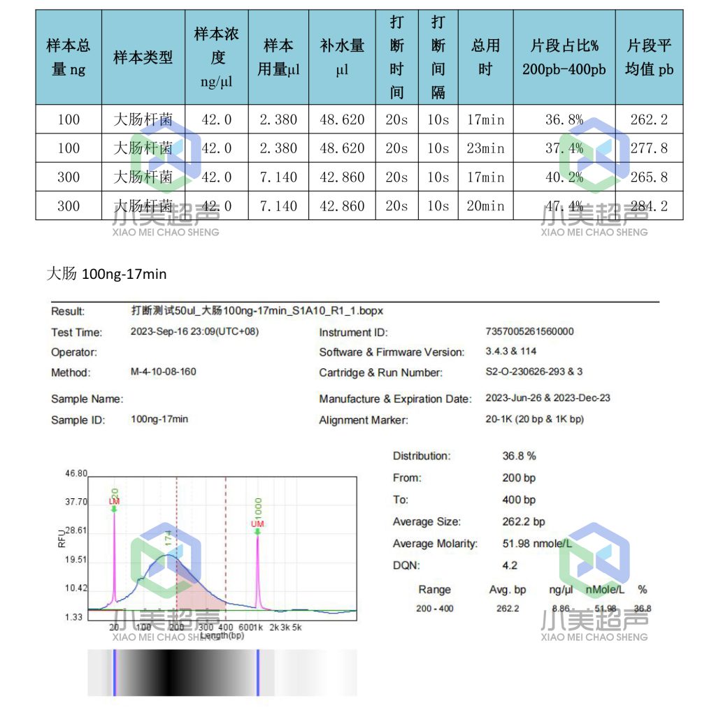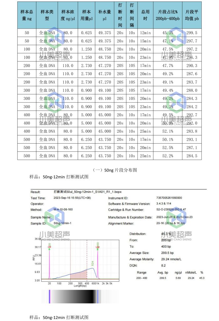 小美非接觸超聲波DNA打斷儀實現全血基因組的高效打斷|測試報告