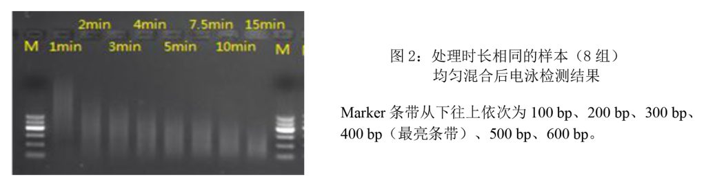 3.相同處理時長的樣本混合后,瓊脂糖凝膠電泳檢測結果: